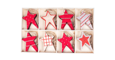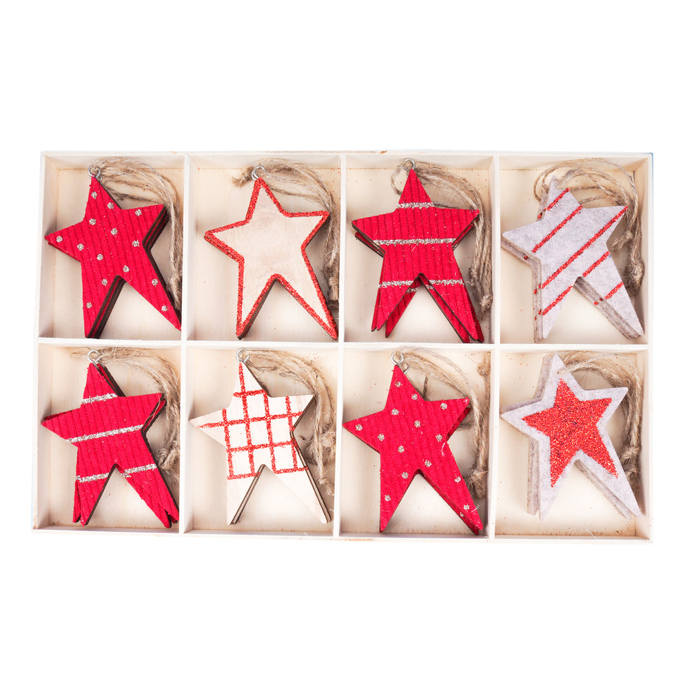w/b. 24 Sterne/Aufhänger sortiert 6x8,5cm