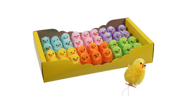 w/b. 36 chenille chickens on wire ass. 4 cm