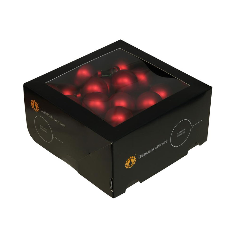 w/b. 36 Glaskugeln/Draht, rot matt, 40 mm