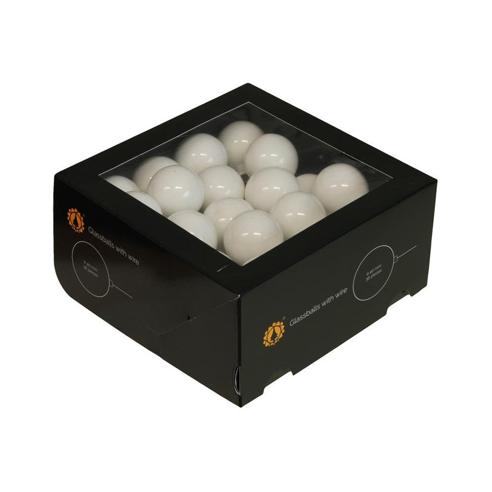 w/b. 36 Glaskugeln/Draht weiß opal 40 mm