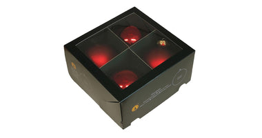 w/b. 4 Glaskugeln/Kappe dunkelrot kombiniert 100 mm