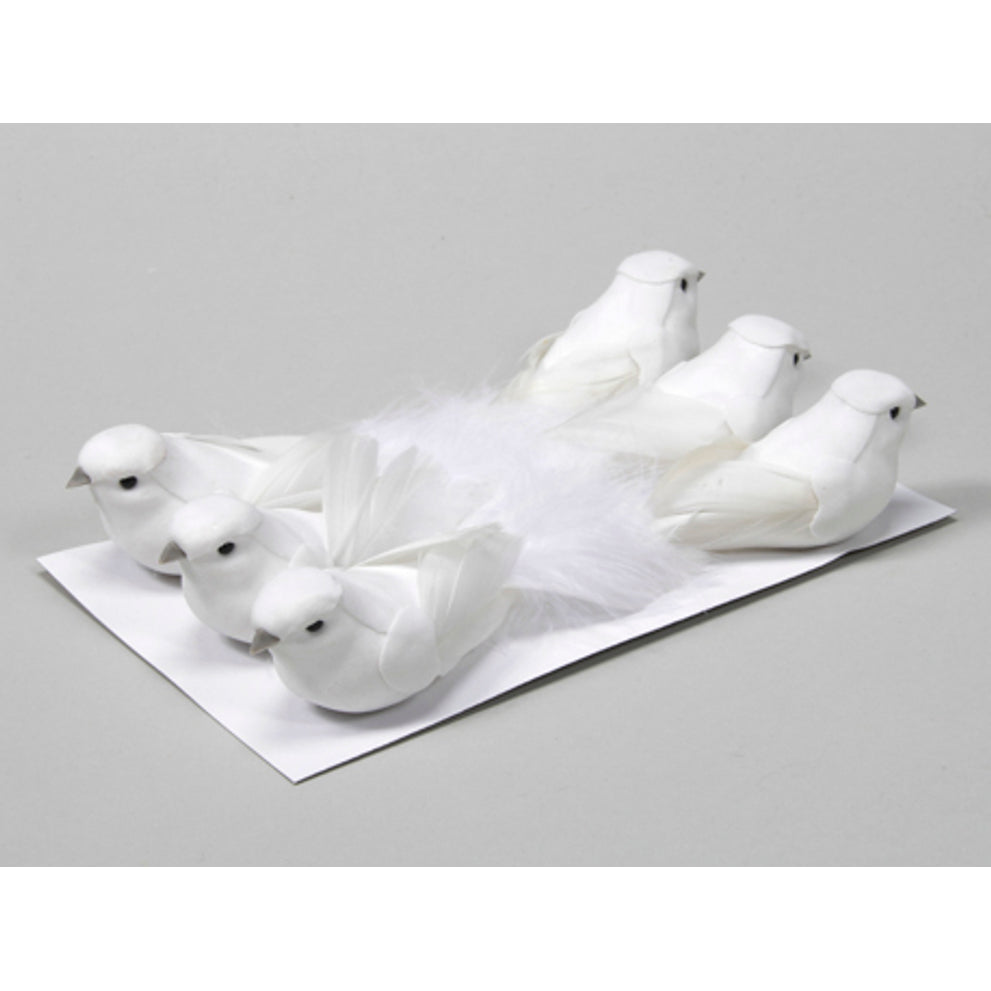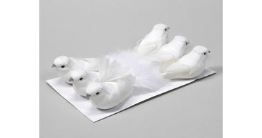 w/b. 6 birds/wire white 15 cm