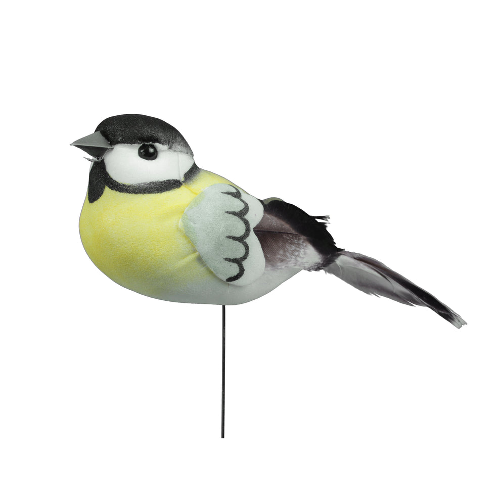 w/b. 6 Vögel/Clip gelb 8,5x3cm