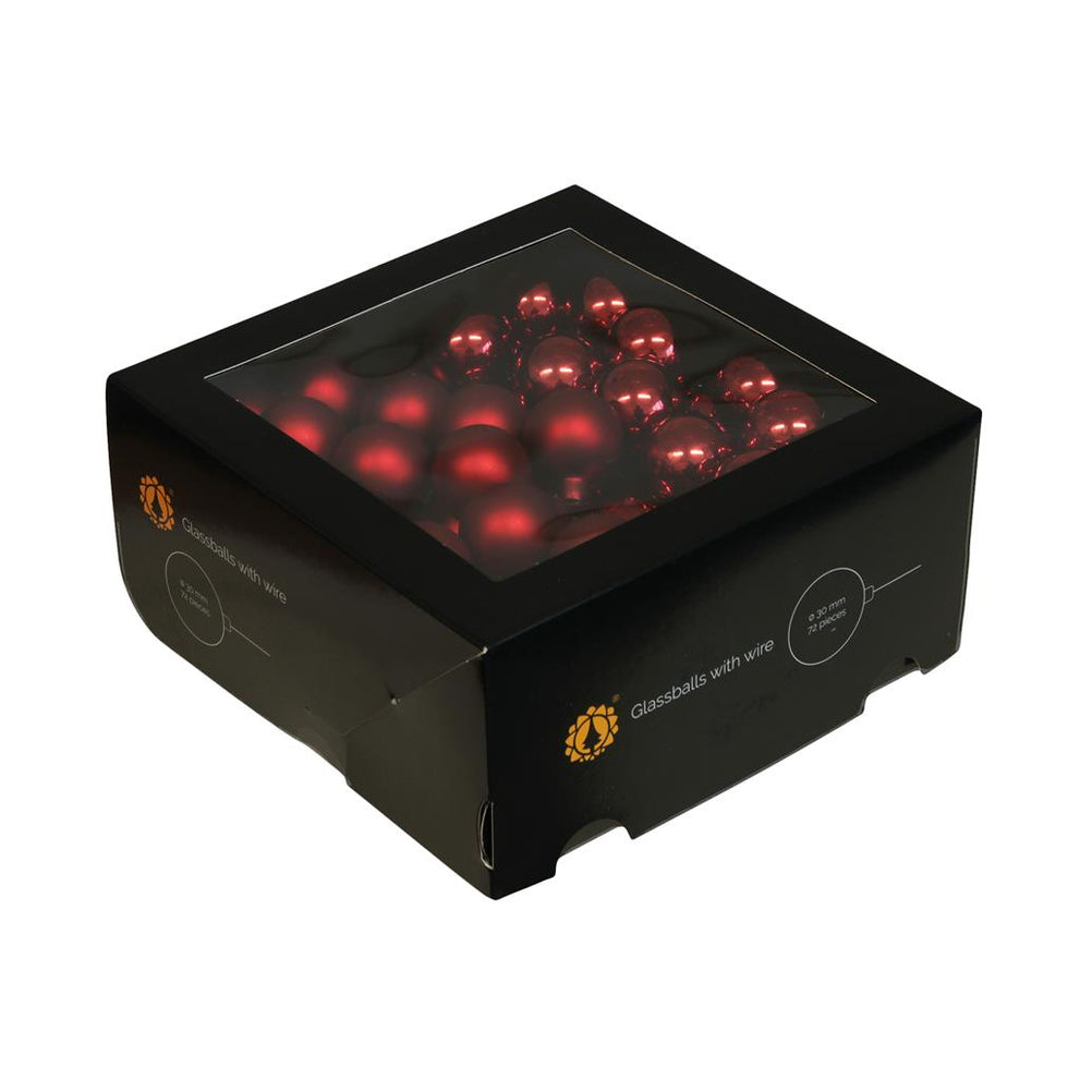 w/b. 72 Glaskugeln/Draht dunkelrot kombiniert 30 mm