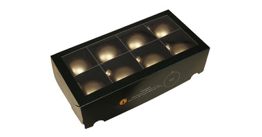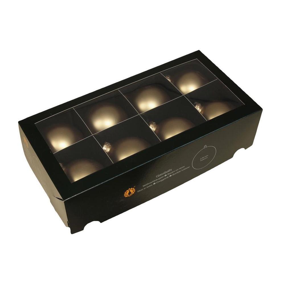 w/b. 8 Glaskugeln/Kappe hellgold matt 80 mm