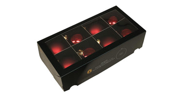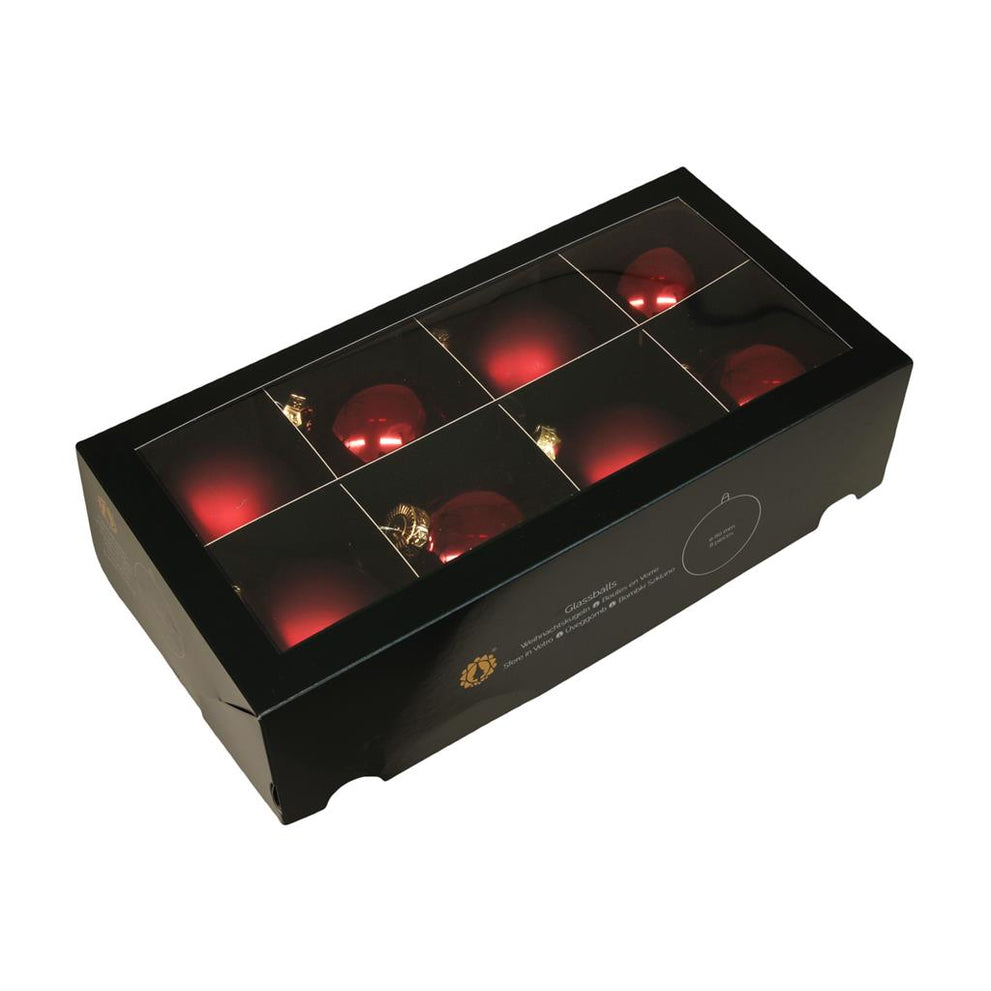 w/b. 8 Glaskugeln/Kappe dunkelrot kombiniert 80 mm
