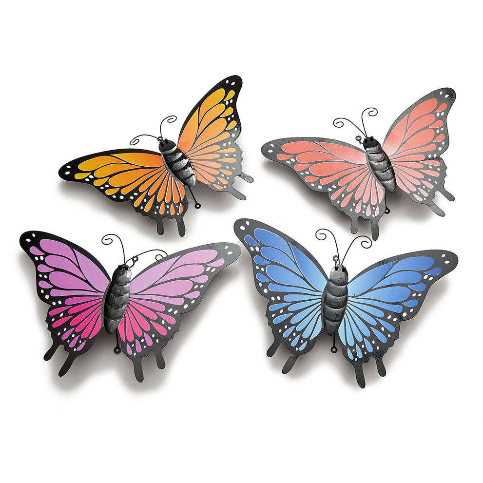 Wanddeco vlinder 'Monarch' metaal 4 assorti 36cm