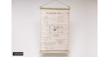 Wandkarte/Pergament "Fokker Flugzeug" Leinen ecru, 80x52cm