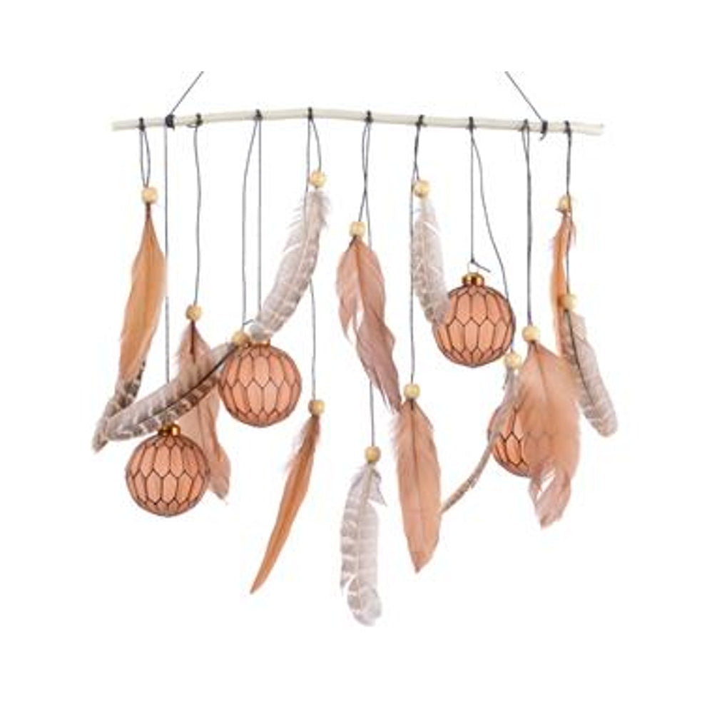 Wbox a 1 Feder Makramee w gl Kugeln natürlich 35x38cm