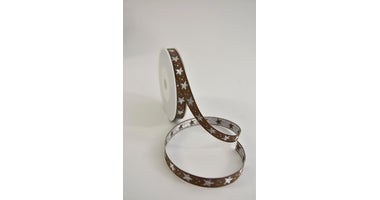 Kerstlint "Lurexsterren" 15mm 20mtr bruin/zilver