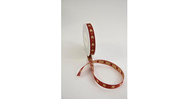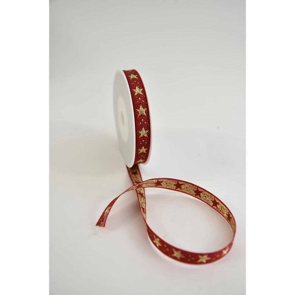 Kerstlint "Lurexsterren" 15mm 20mtr rood/goud