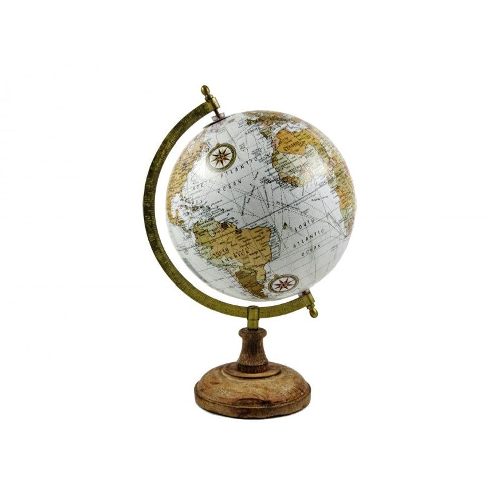 WERELDBOL OP VOET 20CM WIT