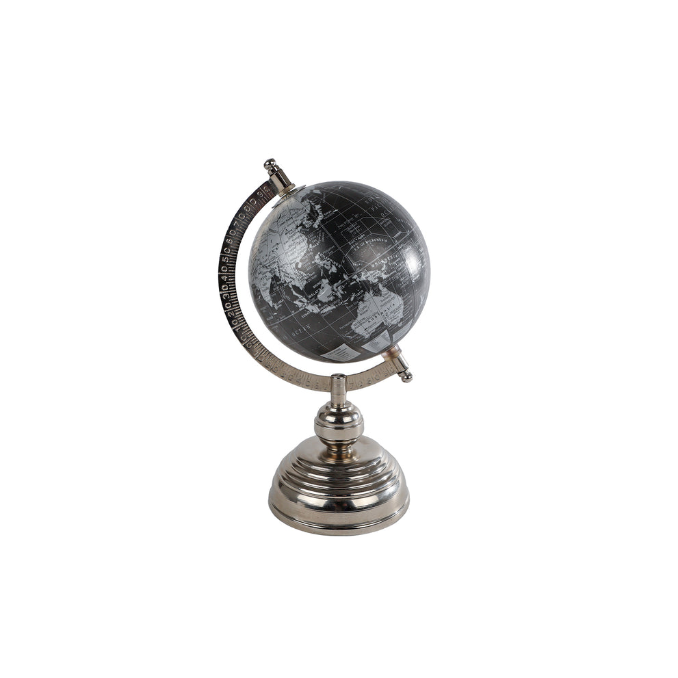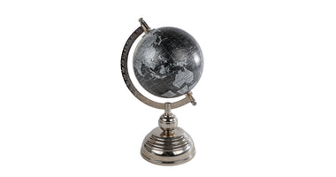 Wereldbol "World" zwart/zilver hout/metaal 11x12x25cm