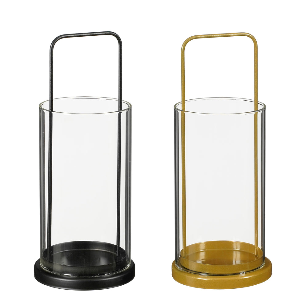 Windlicht schwarz gold 2 assorti PDQ - h25,5xd11cm