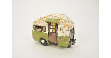 Wohnwagen weiß/blau 12x5x6 cm Polyester