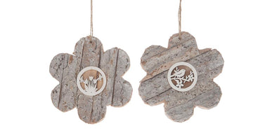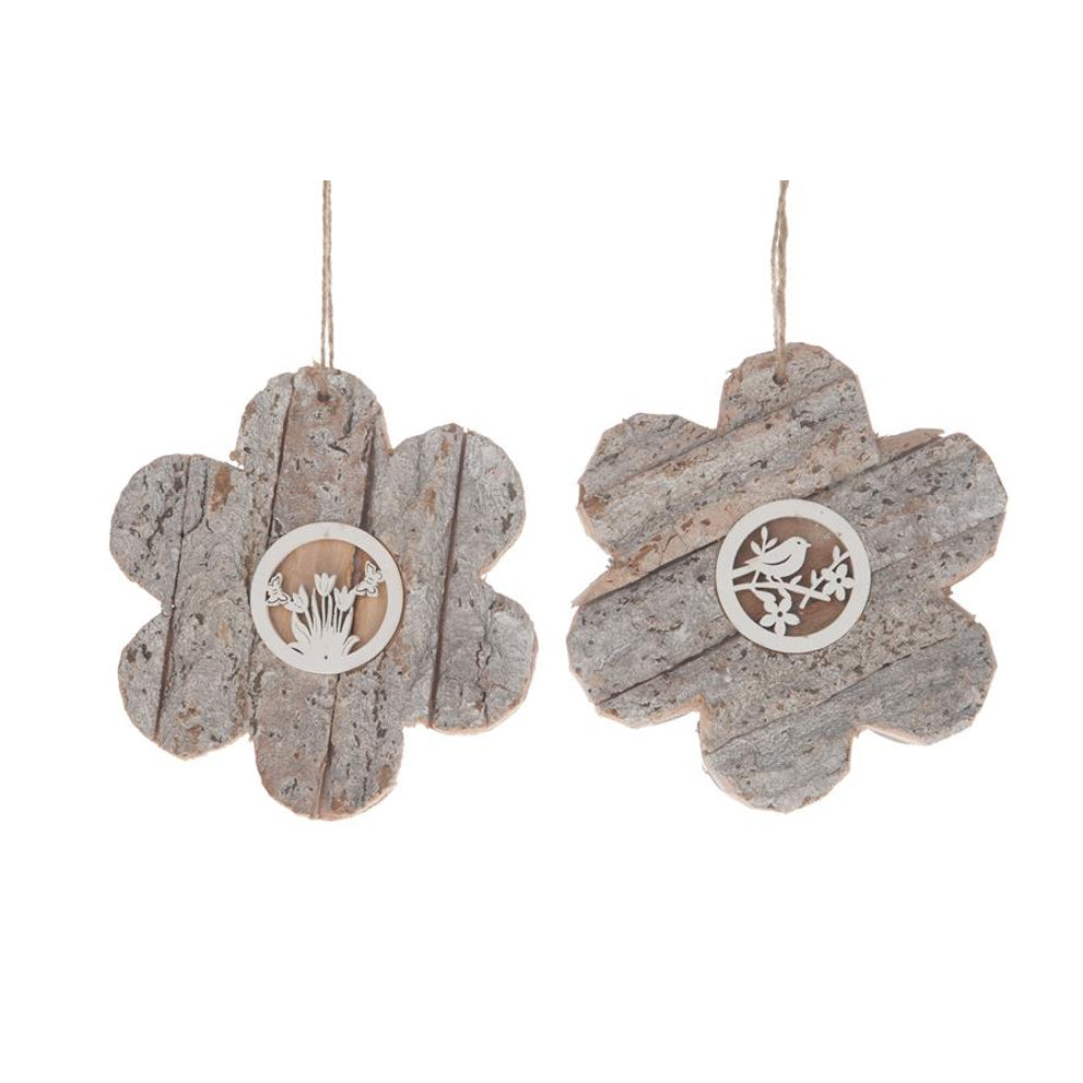 Holzblume mit Rinde Aufhänger 15x15x1.5cm 1pc 2 sortiert Wh