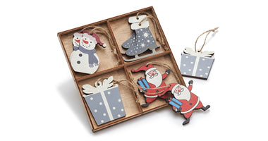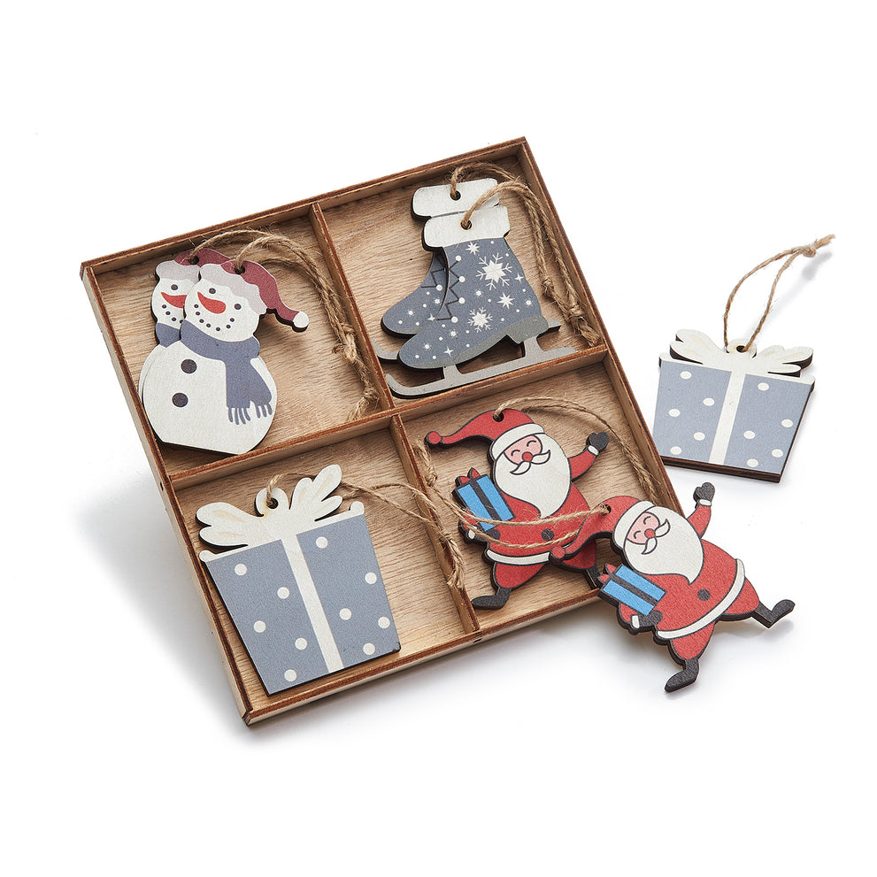 Weihnachtsanhänger aus Holz, 7 cm, farbig, 8 Stück