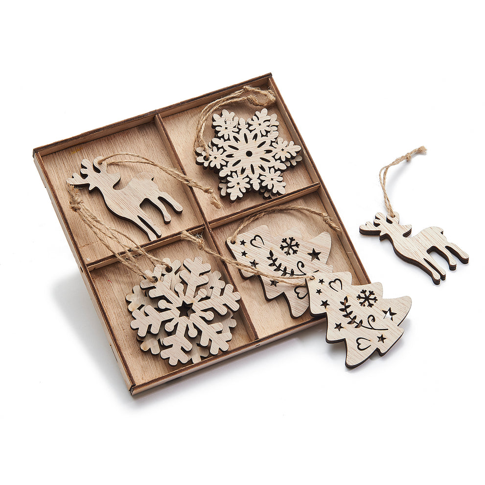 Weihnachtsanhänger aus Holz, 7 cm, natur, 8 Stück