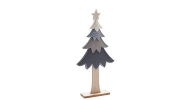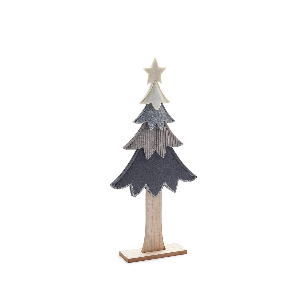 Weihnachtsbaum-Applikationen auf Holzsockel 19x41cm grau