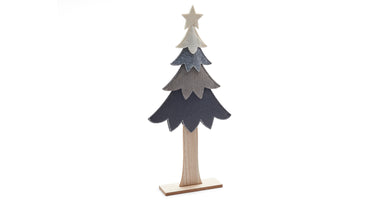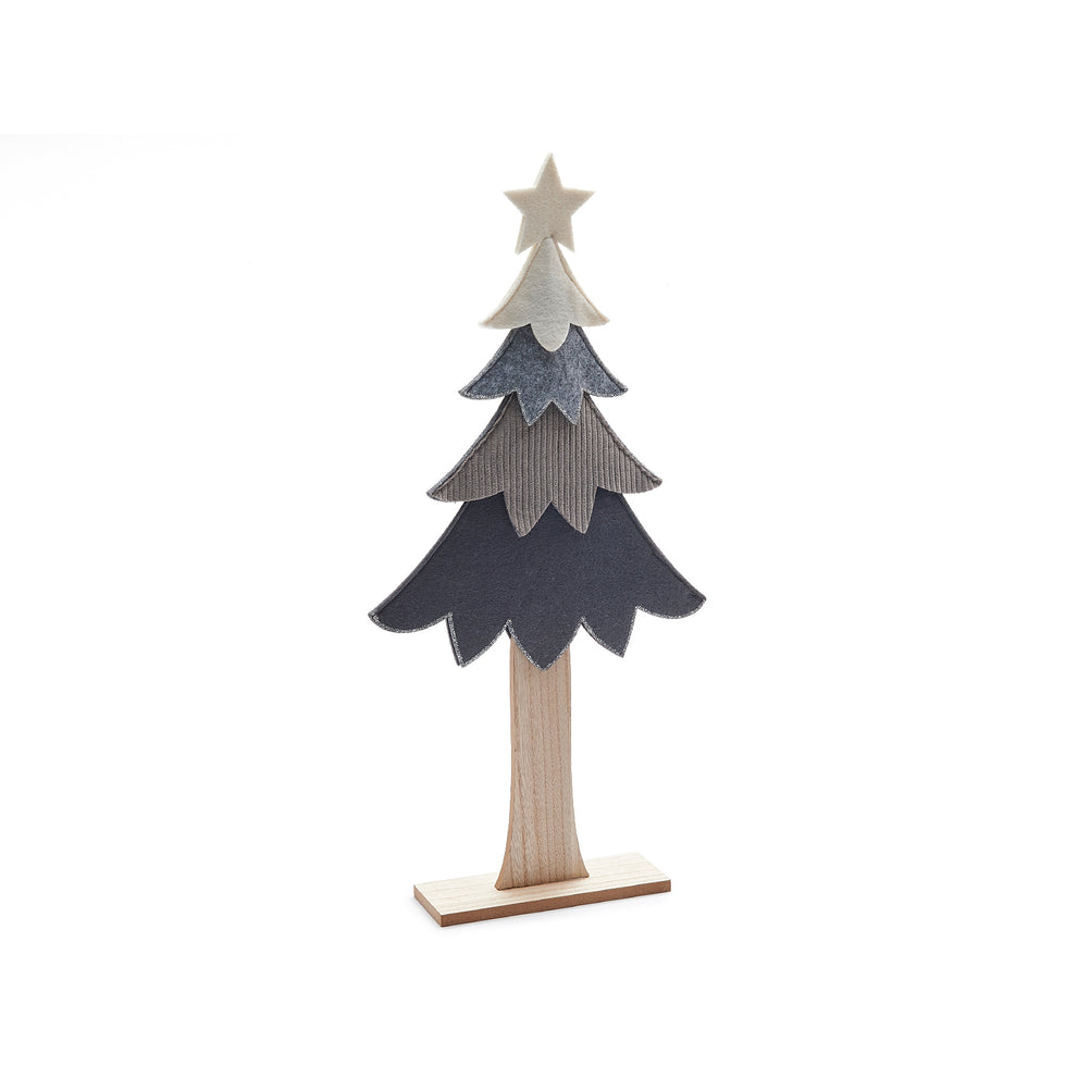 Weihnachtsbaum-Applikationen auf Holzsockel 25x53cm grau