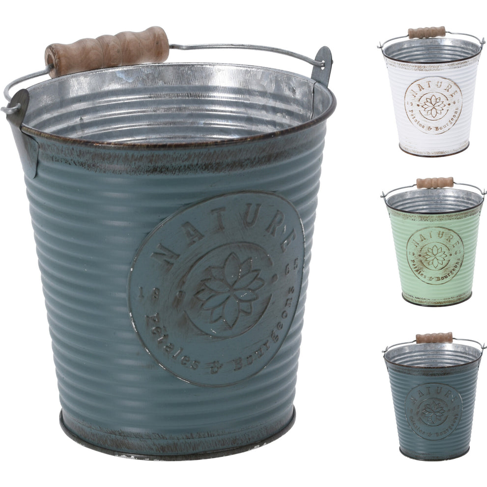 ZINK-PFLANZENKÜBEL GERIPPT MIT HENKEL D12 H13CM 3 SORTIERT