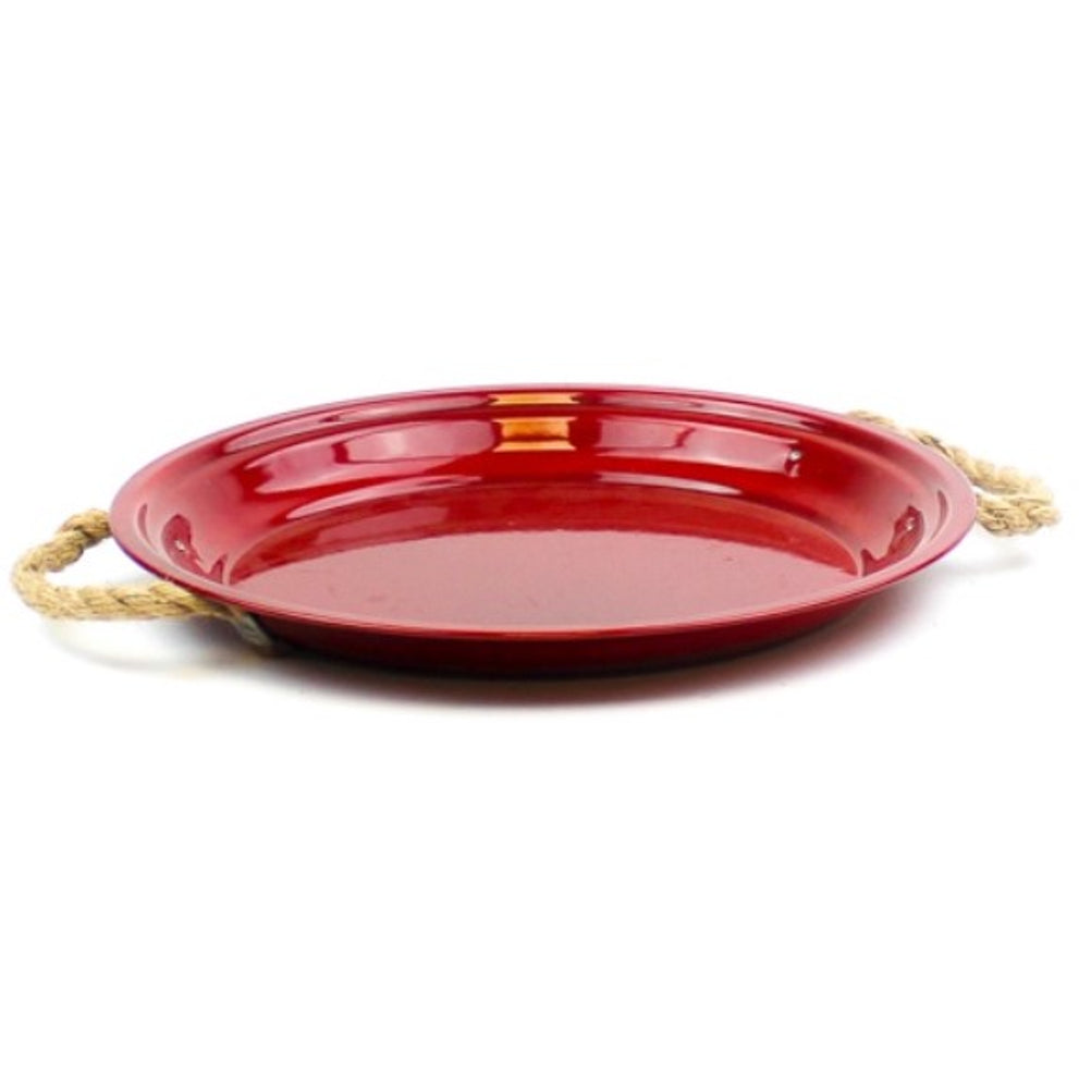Zinktablett rot mit Seilgriff, Höhe 2,5 cm, Durchmesser 29 cm