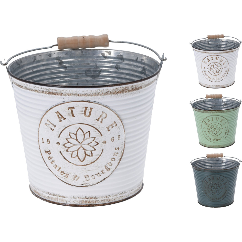 ZINK-PFLANZENKÜBEL GERIPPT MIT HENKEL D16 H14CM 3 SORTIERT